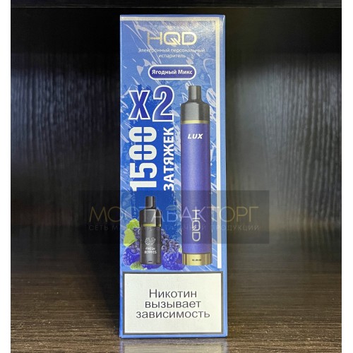 Электронная сигарета HQD LUX в комплекте с 2 картриджами со вкусом Ягодный Микс на 1500 затяжек.