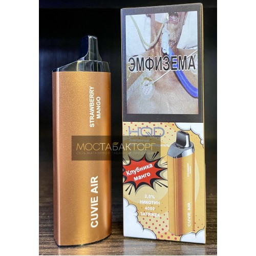 Одноразовая электронная сигарета HQD Cuvie Air Strawberry Mango (hqd Куви Эир Клубника Манго) на 4000 затяжек