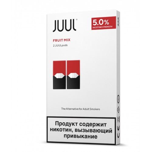 Картриджи для JUUL Fruit Mix (Джул Фруктовый Микс) со вкусом Фруктового Микса. Один под (картридж) расчитан на ~200 затяжек и эквивалентен одной пачке сигарет. Поды (картриджи) доступны в упаковках по 2 и 4шт., крепость никотина составляет 59 мг/мл.