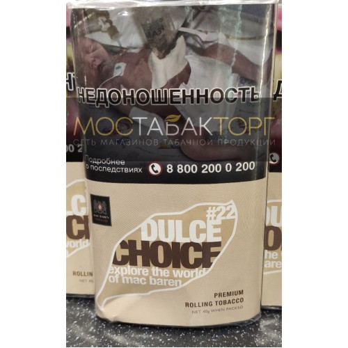Mac Baren Dulce Choice (Мак Барен Дольче Чойз) табак сигаретный с насыщенным и сладковатым ароматом. Табачная смесь состоит из Вирджинии и Берлей. Тонкая нарезка табака способствует легкому «забитию» сигарет и мягкому курению. Табак средней крепости.